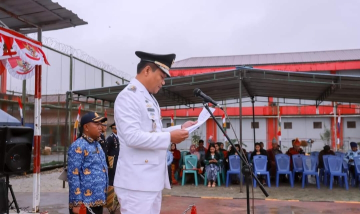 Wakil Bupati Humbahas Dr.Oloan Paniaran Nababan, SH. MH menjadi inspektur upacara Hari Ulang Tahun (HUT) RI ke-78 tahun 2023 dan pemberian remisi umum kepada warga binaan pemasyarakatan di Rumah Tahanan Kelas IIB Humbahas, Kamis,17/8/2023. Komandan upacara Kepala Kesatuan Pengamanan Rutan Humbahas Tamrin Simamora.