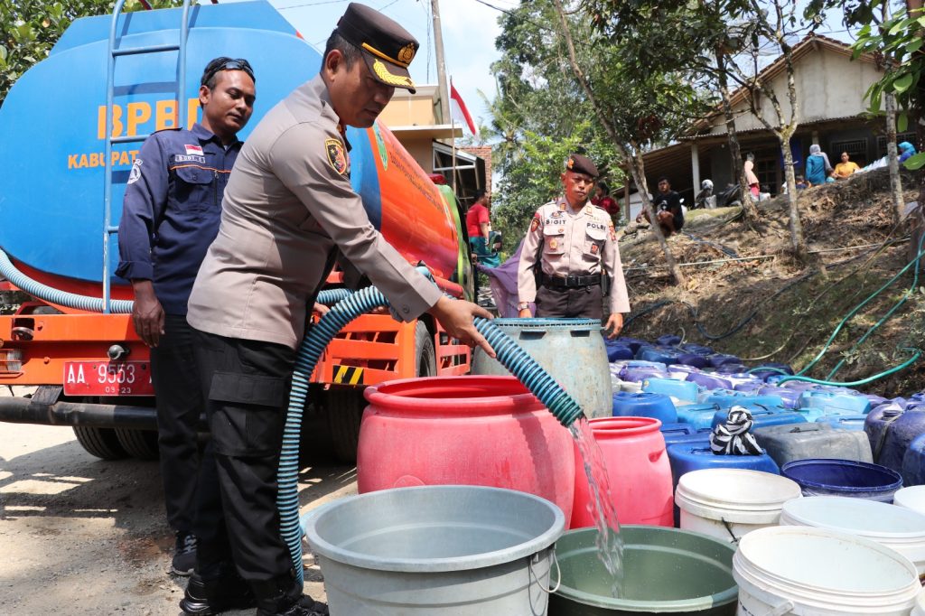 Bersama dengan BPBD, dan TNI, Polres Kebumen menyalurkan bantuan air bersih kepada warga yang terdampak dari musim kemarau panjang.