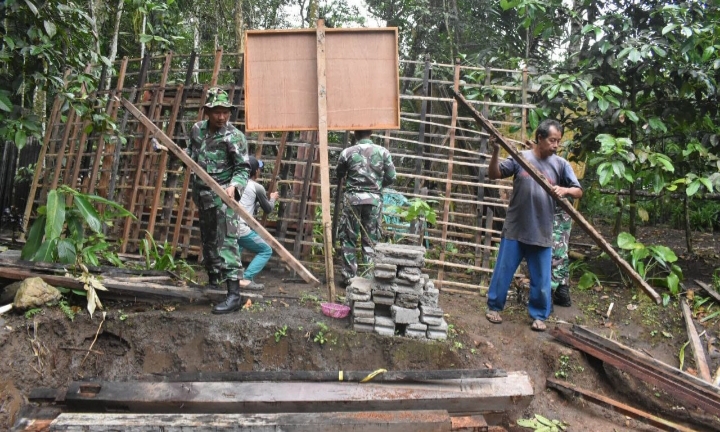 Program fisik Pra-TMMD KE 118 berupa Renovasi Rumah Tidak Layak Huni atau Rutilahu terus digenjok satgas. Hal ini dilakukan agar semua sasaran Rutilahu selesai sebelum penutupan yang berada di Dusun Rejopuro Desa Karanganyar Kecamatan Glagah Kabupaten Banyuwangi. (08-09-2023)