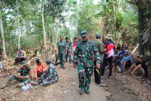 Saat berada dilokasi, Dandim langsung turun dan melihat pekerjaan para Satgas yang tergabung dalam TMMD Sengkuyung kali ini.