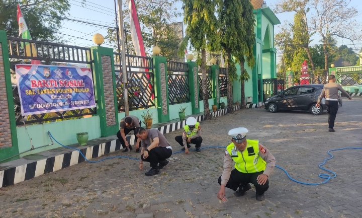 Dalam rangka memperingati HUT Ke-68 Polisi Lalu Lintas (Polantas) Tahun 2023, Satlantas Polres Takalar Polda Sulawesi Selatan menggelar kegiatan Bakti Sosial membersihkan rumah ibadah.