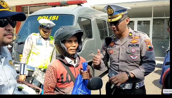 Bahkan dirinya juga diberikan souvenir langsung oleh petugas lantaran tertib dan taat berlalulintas.