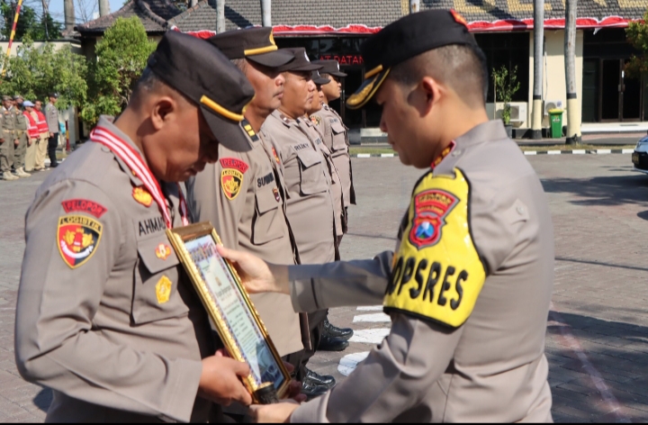 Penghargaan diberikan kepada AKP H.Ahmad Junaidi, S.H., IPTU Sumari, AIPDA Risky Adi Kusuma, A.Md., S.H., Briptu Rizal Amin Widyatama, S.H., IPTU Darminto, S.H., AIPTU Martono, S.H., AIPDA Edi Sartono, S.H., dan BRIPTU Shinta Shantika Sakti, S.H.