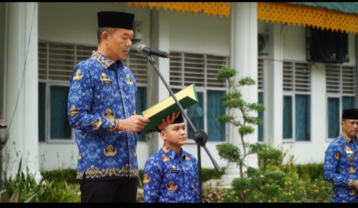 Plt Bupati Langkat H.Syah Afandin,SH diwakili Sekdakab Langkat H Amril,S.Sos,MAP bertindak sebagai pembina upacara Hari Kesadaran Nasional, bertempat di Halaman Kantor Bupati, Senin 18 September 2023.