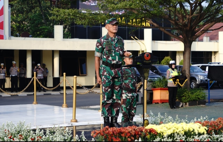 Pangdam III/Slw Mayjen TNI Erwin Djatniko menjadi inspektur upacara pada Apel Gelar Pasukan Operasi Zebra Lodaya 2023 yang dilaksanakan di Lapangan Polda Jawa Barat Jalan Soekarno Hatta No. 748, Kota Bandung Senin, (04/09/2023).