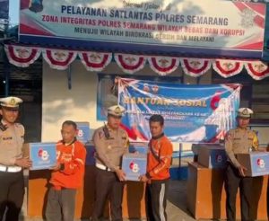 Acara yang dikemas dengan pembagian paket sembako secara acak/Random ini, dilakukan personil Sat Lantas sekaligus pelaksanaan patroli situasi arus di wilayah Kab. Semarang.