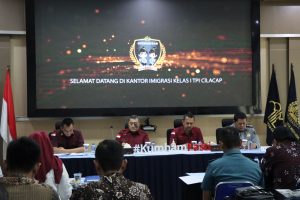 Kantor Imigrasi Cilacap menggelar Rapat Koordinasi Tim Pengawasan Orang Asing (Timpora) tingkat Kecamatan Se-Kabupaten Cilacap, Kamis (21/9). Kegiatan ini dilaksanakan di Aula Wijayakusumah Kantor Imigrasi Kelas I TPI Cilacap.