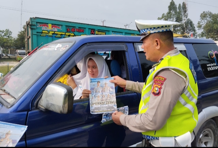 Dalam melaksanakan Operasi Zebra Lancang Kuning Tahun 2023, Satgas Preemtif Ops Zebra LK 2023 Melaksanakan pembagian 200 Brosur Ops Zebra LK 2023 kepada pengendara roda 2 dan roda 4 baik angkutan umum maupun barang.