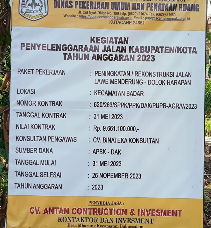 Di tahun 2023 ini juga proyek puluhan miliar di Dinas PUPR Aceh Tenggara selaku PPK nya di duga Muhammad Yusuf ST, selaku Kabid jalan dan jembatan di Dinas itu