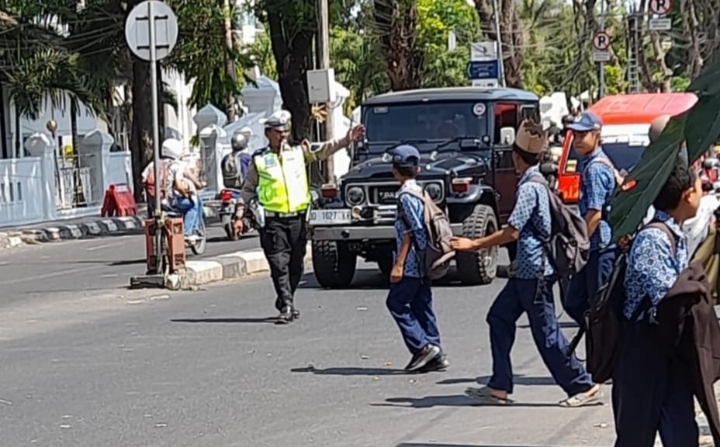 Pada jam pulang sekolah, banyak siswa yang menyeberang jalan, terutama di Simpang Pos Lantas Jendral Sudirman. Karena, di daerah ini terdapat sekolah SMP,” ujarnya.
