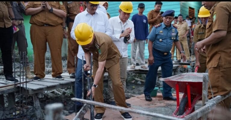 Bupati Rokan Hilir Afrizal Sintong SIP MM melakukan peletakan batu pertama untuk melaksanakan pembangunan gedung belajar SDN 001 dan SMPN 003 di Kelurahan Sinaboi Kota Kecamatan Sinaboi, Kabupaten Rokan Hilir, Senin (18/9/2023).