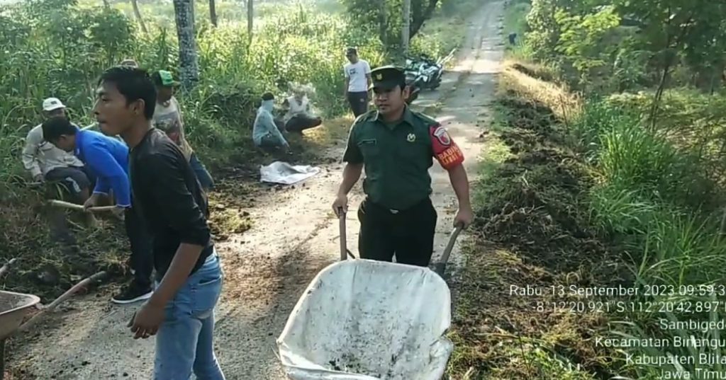 Untuk menjaga kebersihan lingkungan di wilayah binaan agar tetap kelihatan bersih dan rapi, Babinsa Koramil 0808/11 Binangun Kodim 0808/Blitar Serma Edi Purnomo bersama warga masyarakat, melaksanakan kegiatan kerja bakti pembersihan lingkungan, bertempat di Desa Sambigede Kec. Binangun Kab. Blitar, Rabu (13/9/2023).