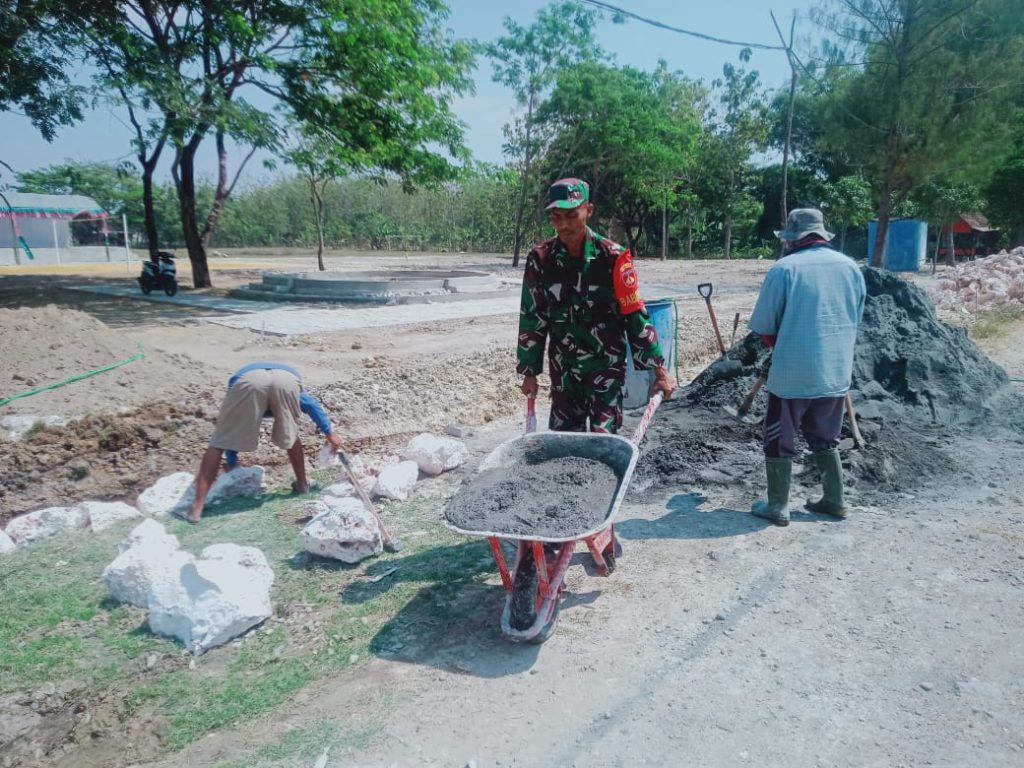 Pada kesempatan tersebut Serda Legiono membantu dengan sukarela, ikhlas dan tanpa pamrih demi pembangunan di Desa binaannya.