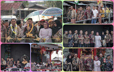 Bupati Rokan Hilir ( Rohil ) Afrizal Sintong S.IP M.Si meresmikan pembangunan jembatan penyebarangan Sinaboi, Kecamatan Sinaboi, sekaligus meresmikan kelenteng Kiu Kiotong Vihara Tri Darma Samudra, di Kecamatan Sinaboi, Minggu (29/10/2023) sore.