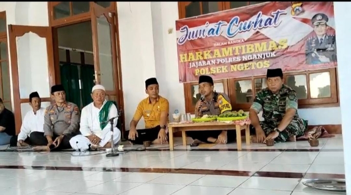 Hal ini disampaikan Kapolres Nganjuk AKBP Muhammad, S.H., S.I.K., M.Si., melalui Wakapolres Nganjuk Kompol Mustijat Priyambodo, S.I.K., M.H., saat menggelar program Jumat Curhat bersama PJU, Forkopimcam Ngetos, Takmir dan jamaah masjid Al Istiqomah di Dusun Nglajer, Desa Kuncir, Kecamatan Ngetos, Kabupaten Nganjuk, Jumat (27/10/2023).