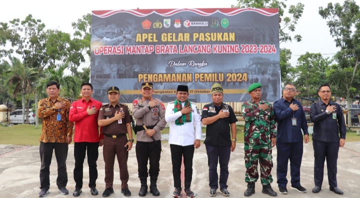 17/10-23. Polres Pelalawan laksanakan apel gelar pasukan operasi mantap Brata Lancang Kuning tahun 2023-2024 di halaman Kantor Bupati Pelalawan, pada Selasa (17/10/2023).