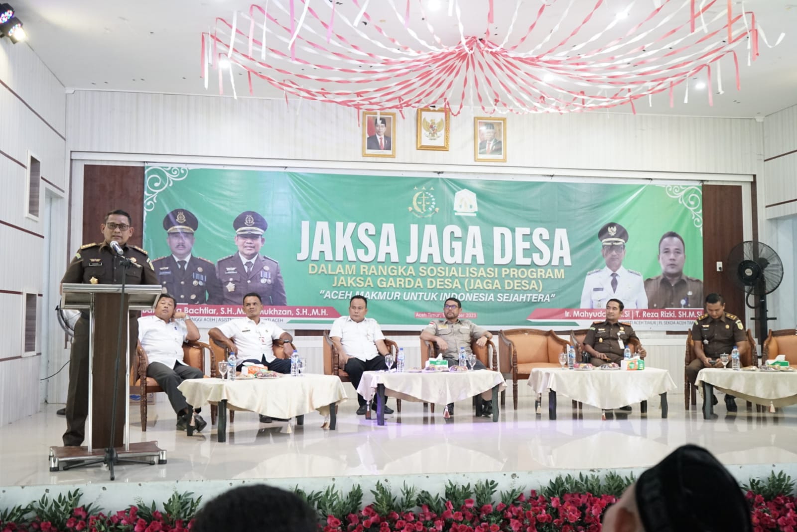 Kehadirannya di acara ini bertujuan untuk melakukan pemantauan terhadap Kegiatan Jaga Desa yang diselenggarakan oleh Kejaksaan Tinggi Aceh.