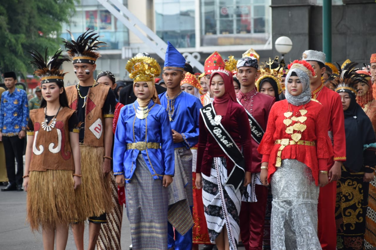 Ada yang berbeda dengan upacara lain, yaitu para kepala OPD mengenakan pakaian adat nasional dari berbagai daerah.
