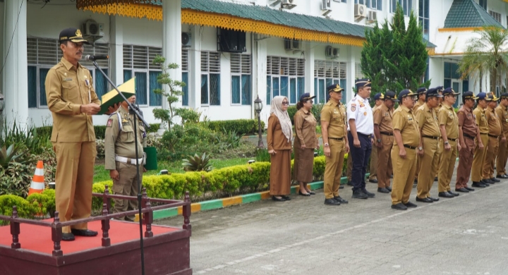 Plt Bupati Langkat H.Syah Afandin, SH diwakilkan oleh Staf Ahli Bidang Pemerintahan, Hukum dan Politik Drs. H. Rudi Kinandung, M.AP menjadi Pembina Apel Gabungan Aparatur Sipil Negara (ASN) di Lingkungan Pemerintah Kabupaten Langkat, bertempat di Halaman Kantor Bupati Langkat, Senin (23/10/2023).
