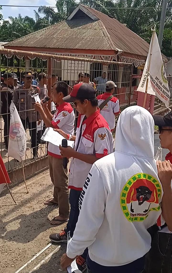 Puluhan massa dari Dewan Pimpinan Cabang Pemuda Mandiri Peduli Rakyat Indonesia (DPC PMPRI) Kabupaten Asahan geruduk Kantor PTPN IV Kebun Air Batu Kecamatan Air Batu, Kabupaten Asahan, pada Senin (30/10/2023).