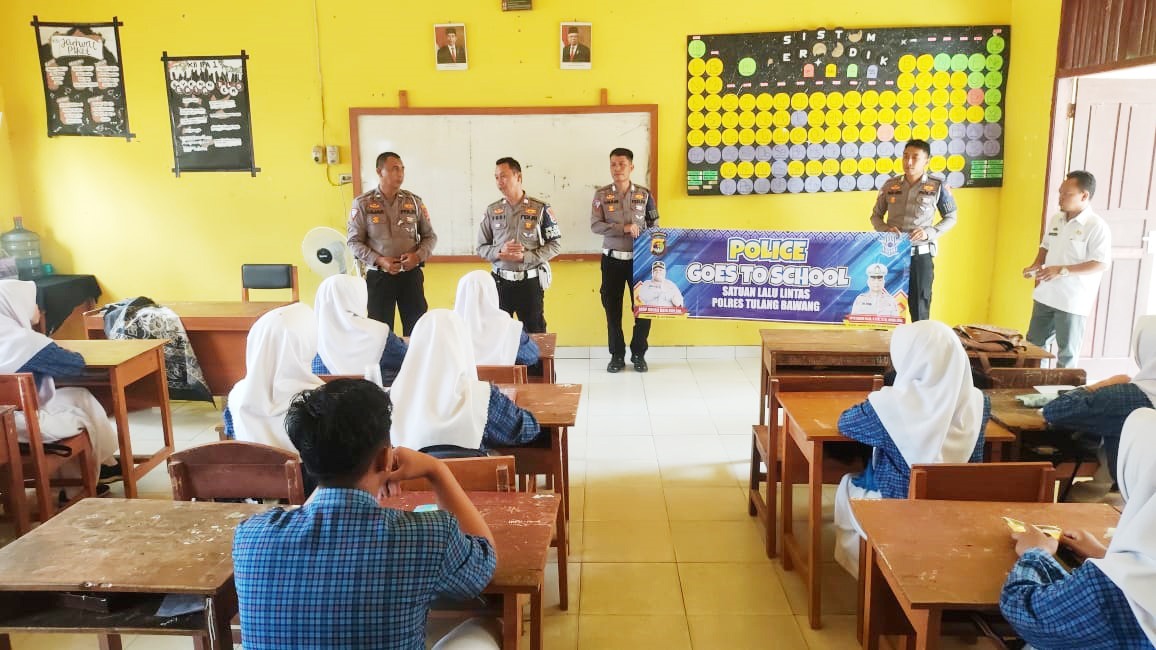 Satuan Lalu Lintas (Sat Lantas) Polres Tulang Bawang, Polda Lampung, menggelar kegiatan Police Goes To School untuk memberikan edukasi sejak dini kepada para pelajar sekolah menengah atas (SMA) yang ada di wilayah hukumnya.