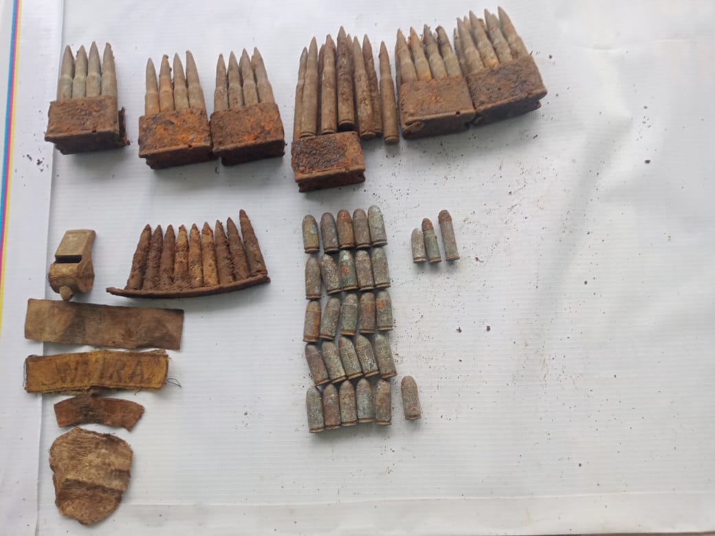 Namun saat melakukan penggalian sedalam kedalaman 40 cm, di temukan sejumlah amunisi diantaranya peluru kall 7,62 mm : 50 butir, kall 5,56 mm : 9 butir, Mu kall 9,9 mm : 26 butir, kall 2,22 mm : 1 butir, Mu kall 6,5 mm : 2 butir, 1 buah peluit, bet nama bertuliskan Wanra, dan 1 buah pelumas seri bermerek Clinium Reasec Strugeron Jenssen Pharmaceutica.