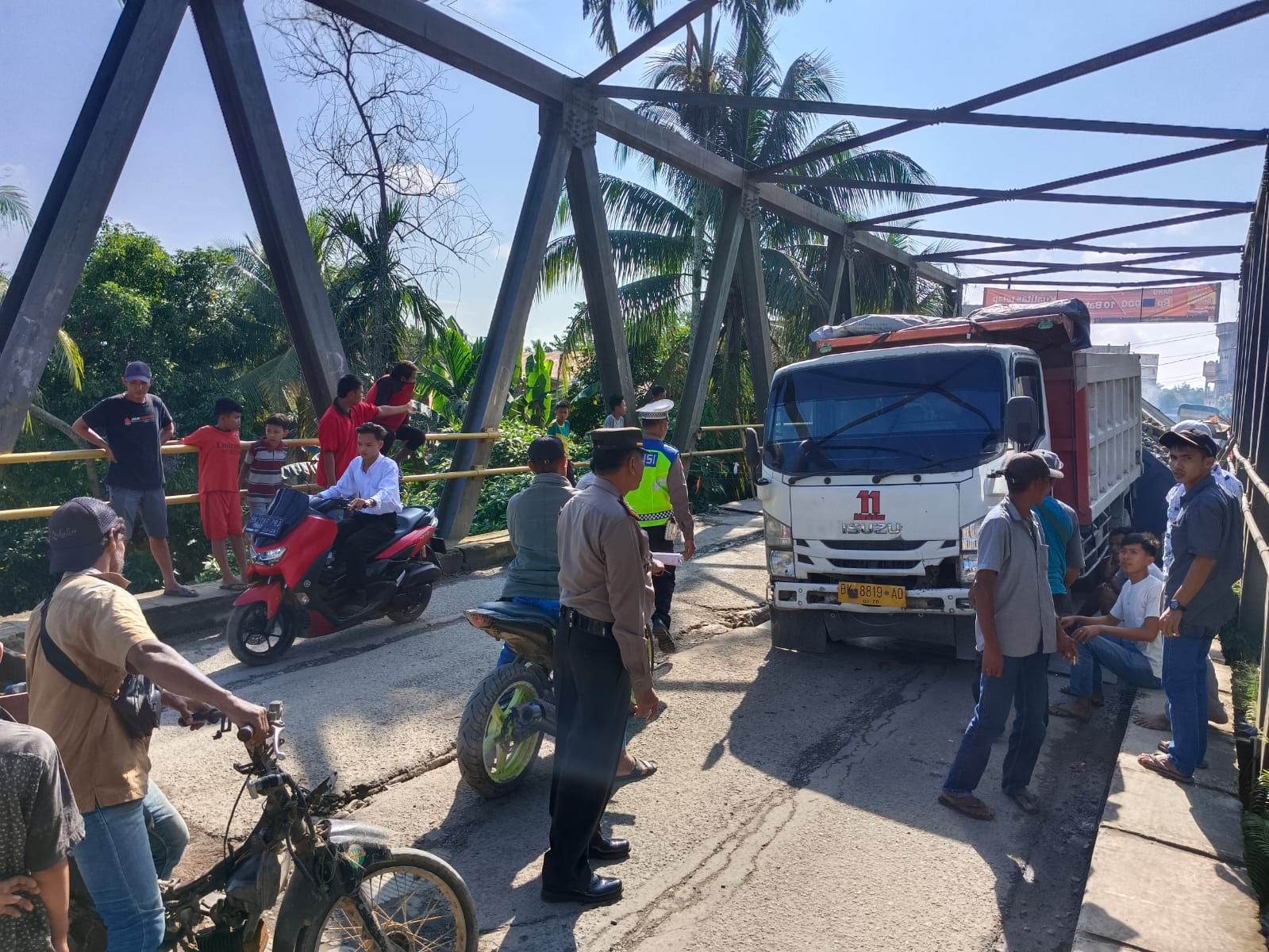 Truk Anjlok Polsek Padang Tualang melaksanakan Pam dan gatur lalin di Jembatan Titi Besi Sei Tenang Batang Serangan