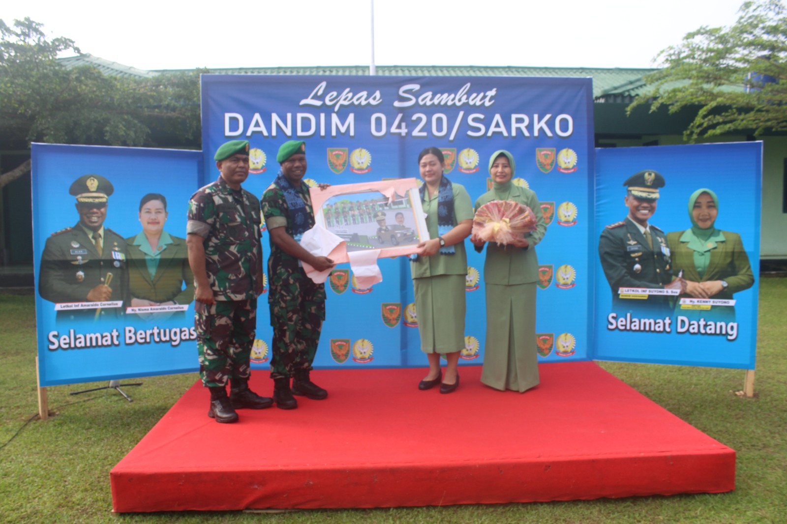 Pagi ini bertempat di Makodim 0420/Sarko Kabupaten Merangin Provinisi Jambi, di hadapan keluarga besar Kodim 0420/Sarko Letkol Inf Amaraldo Cornelius di dampingini isteri Nyonya Nisma Amaraldo Cornelius untuk berpamitan.