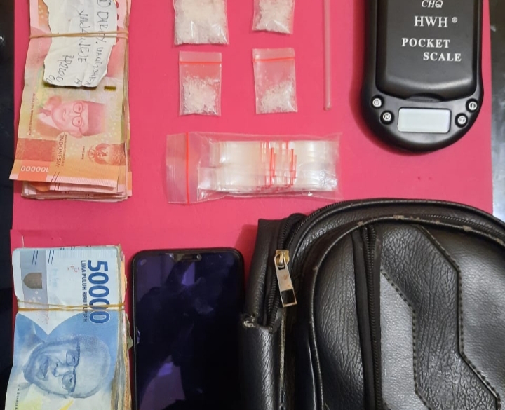 Barang bukti lain yang disita 1 unit timbangan elektrik, Uang senilai Rp. 5.050.000 diduga hasil penjualan, 1 buah sekop yang terbuat dari pipet, 1 bungkus plastik klip yang berisikan plastik klip kosong dan 1 unit handphone android.