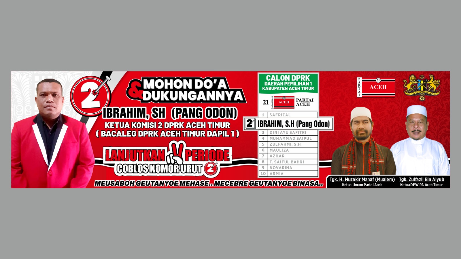 Sebagaimana sudah kita ketahui bersama Ibrahim Panglima odon SH ikut bertarung di Pemilu Legislatif 2024 sebagai Caleg DPRK Aceh timur dari partai PA Dapil I Aceh timur.