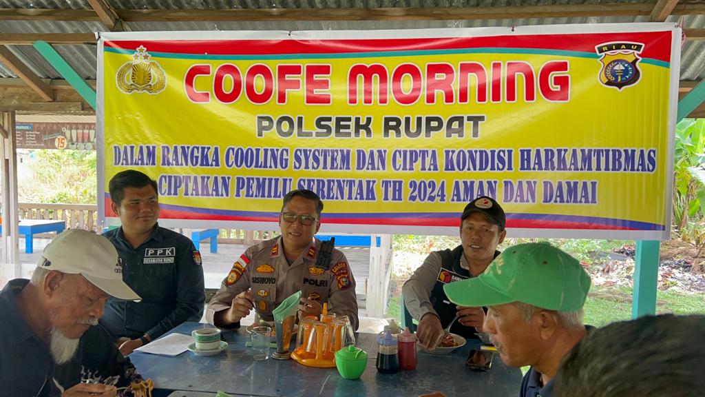 Dalam kesempatan coofe Morning Bapak Iptu Siswoyo,SH Kapolsek Rupat mengharapkan peran dan kerja sama semua pihak untuk mensukseskan Pemilu Serentak yang aman dan damai, dan mengharapkan kerjasama semua pihak,karena pada tanggal 28 November 2023 akan berlangsung masa kampanye resmi yang telah ditetapkan Komisi Pemilihan Umum (KPU). Dalam coofe Morning juga dilakukan diskusi dan dialog yang berkaitan dengan mensukseskan Pemilu Serentak tahun 2024 yang aman dan damai.