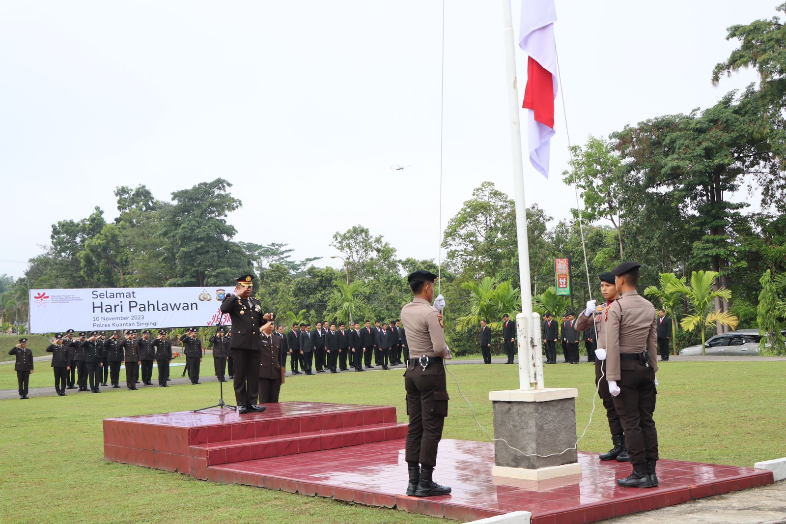 Upacara peringatan hari Pahlawan ke-78 tahun 2023 dipimpin oleh Kapolres Kuansing AKBP Pangucap Priyo Soegito, S.I.K., M.H., dan diikuti oleh Kabag Ops Polres Kuansing KOMPOL Hendri Suparto, S.Sos, Kabag SDM, KOMPOL Hadi Purnama, S.IP, Kabag Ren, AKP Akmal, S.E., Kabag Log, AKP Subagja, S.H., Para Kasat Polres Kuansing, Perwira Polres Kuansing dan Personil Polres Kuansing.