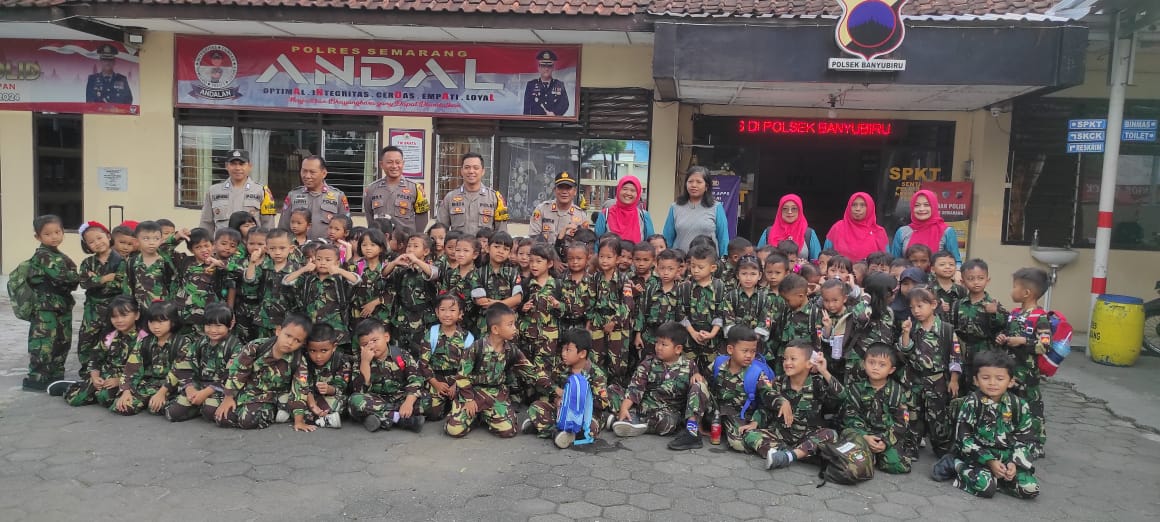 Kenalkan Profesi Polisi, Polsek Banyubiru terima kunjungan TK Kartika III-23 Batalyon Zipur. Y
