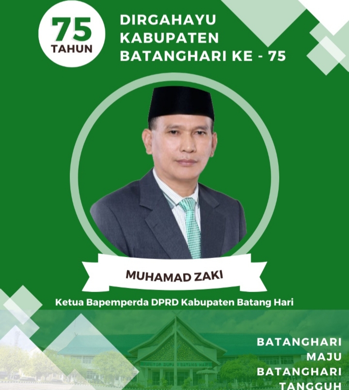 Ketua Bapemperda DPRD Kabupaten Batanghari ( Muhamad Zaki) Mengucapkan “ DIRGAHAYU KABUPATEN BATANGHARI KE 75 BATANGHARI MAJU BATANGHARI TANGGUH”