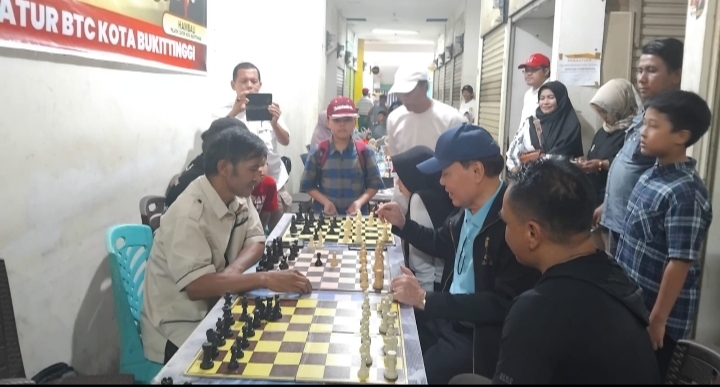 Peserta Liga Catur Mingguan (LCM)Persatuan Catur Seluruh Indonesia (Percasi) Bukittinggi Sumatera Barat, tingkat pelajar Junior dan senior yang di gelar di BTC Pasar Banto Kota Bukittinggi sontak kaget dengan kedatangan Erizal Chaniago beserta team, minggu (19/11/2023) sore.