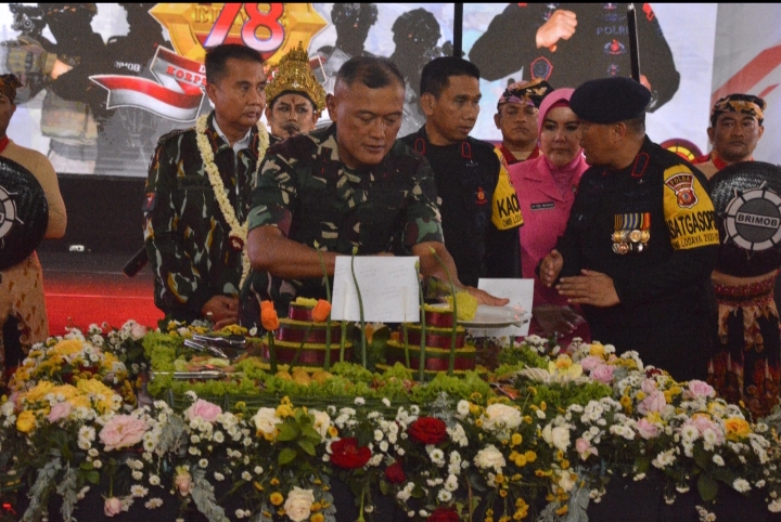Pada kesempatan tersebut juga dilakukan pemotongan tumpeng oleh Pj. Gubernur, Pangdam dan Kapolda yang diserahkan kepada anggota Brimob yang akan memasuki masa pensiun, anggota termuda serta anggota yang berprestasi dalam tugas.