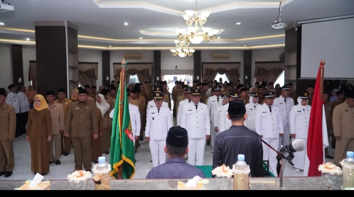 Plt Bupati Langkat H.Syah Afandin SH diwakilkan Sekdakab Langkat H.Amril, S.Sos, M.AP melakukan pengukuhan, pengangkatan dan nengambil sumpah ASN Pemkab Langkat.
