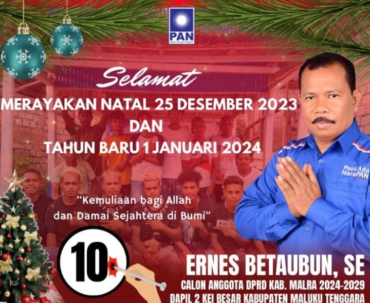 ArtikelCaleg Anggota DPRD Malra 2024-2029 Mengucapkan Selamat Natal 2023 dan Tahun Baru 2024 Jurnal Polisi2 tahun ago2 tahun ago01 mins Malra – jurnalpolisi.id Calon Anggota DPRD Malra 2023-2029 Ernes Betaubun SE Mengucapkan ” SELAMAT NATAL 2023 DAN TAHUN BARU 2024 “ Navigasi pos Previous: Polda Jateng Manfaatkan ETLE Drone Untuk Memantau Lalu Lintas Dan Penanganan Laka Lantas Selama NataruNext: ADA DUGAAN PERSEKONGKOLAN JAHAT “TANDA TANGAN KEPALA UPT PUSKESMAS SECANGGANG DIPALSUKAN OLEH BEBERAPA OKNUM PEGAWAINYA Tinggalkan Balasan Batalkan balasanAlamat email Anda tidak akan dipublikasikan. Ruas yang wajib ditandai *Komentar * Nama * Email * Situs Web Simpan nama, email, dan situs web saya pada peramban ini untuk komentar saya berikutnya.