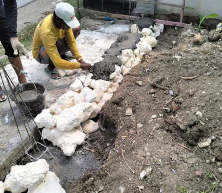 Apalagi Saat pengerjaan yang seharusnya untuk pondasi menggunakan aturan setiap Batu diberikan sepesi adonan pasir dan semen tapi disini diketahui pengerjaanya Batu ditumpuk berbentuk segi empat memanjang baru dilapisi adonan semen, hal ini tentunya patut dipertanyakan kekuatan pondasi tersebut, dan juga pengurangan secara sengaja RAB yang ditentukan.