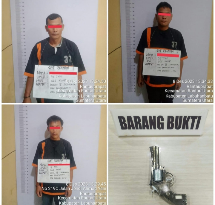 Team Opsnal Unit Reserse Umum Polres Labuhanbatu Sumatera Utara berhasil meringkus tiga orang pria kawanan pelaku tindak pidana pencurian dengan kekerasan (Curas) yang terjadi pada Rabu 06 Desember 2023 pukul 22.30 wib di Jalan Afdeling IV, Perkebunan PTPN 3 Rantauprapat, Kecamatan Bilah Barat, Labuhanbatu.
