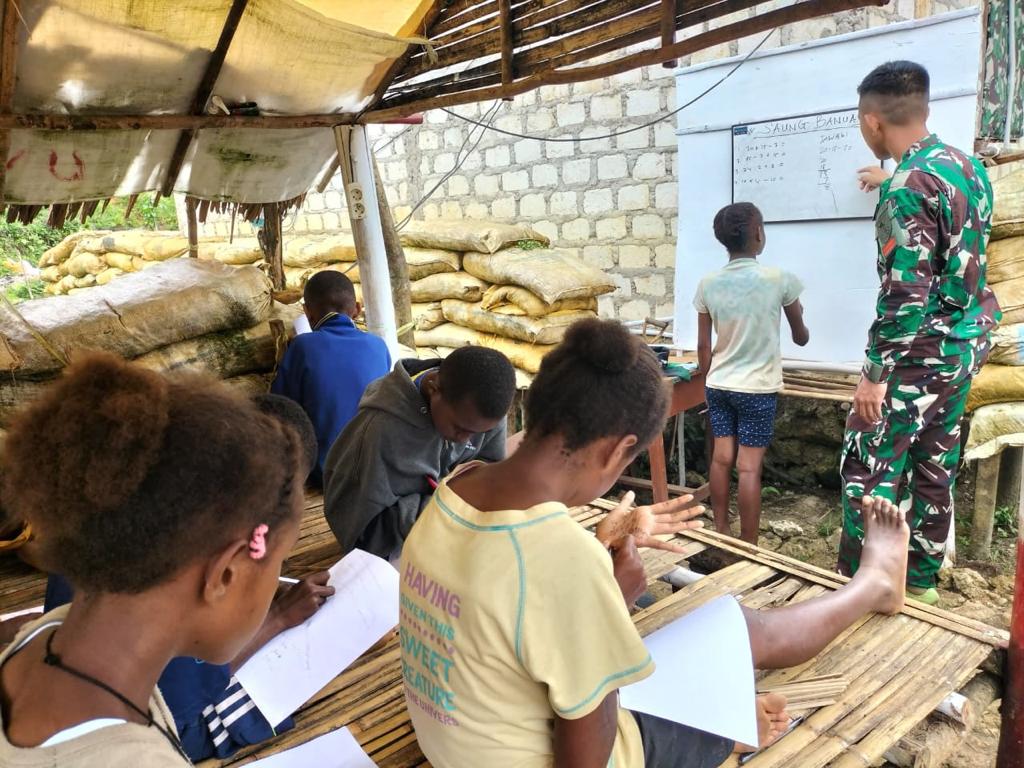 Anak Kampung Bori Belajar Bersama di Pos Satgas Yonif 623