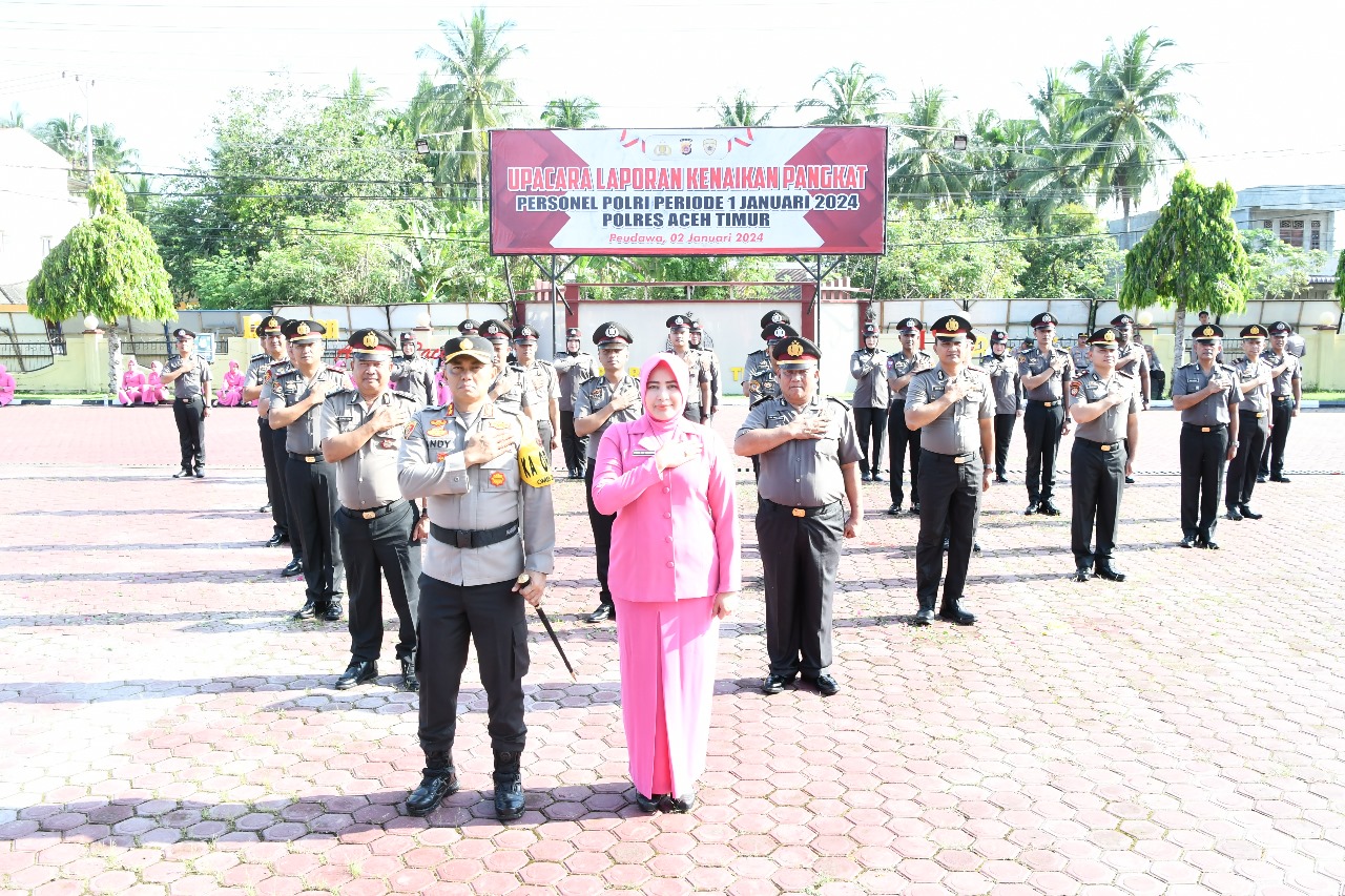 Upacara kenaikan pangkat sebagai bentuk apresiasi dan penghargaan atas kinerja dan pengabdian kepada negara dan masyarakat itu dipimpin oleh Kapolres Aceh Timur AKBP Andy Rahmansyah, S.I.K.,S.H.,M.H.