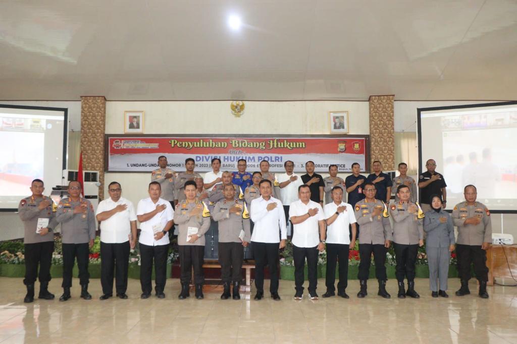 Tampak hadir dari Ketua Tim Pentuluhan dari Divisi Mabes Polri Karo Kerma Hukum DivKum Mabes Polri Brigjen pol. DR. Rakhmad Setyadi S.IK,.SH,.MH,.TTK. beserta tim yakni Kombes Pol. J. Permadi Wibowo S.IK.,ΜΗ,.ΤΤΚ, Kombes Pol. Muhammad Ros S.IK,. ΜΗ,.ΤΤΚ. dan Kompol. Miyarsih SH,.TTK.