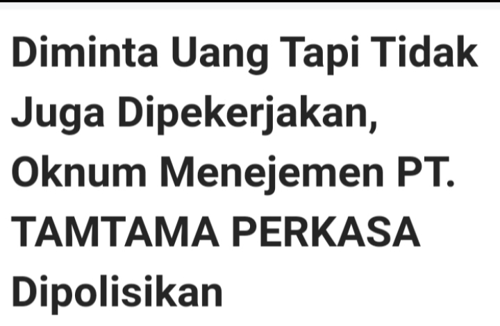 Beredar Berita Pungutan Pencari Kerja, Klarifikasi PT. TAMTAMA PERKASA Akan Ditangani Sesuai Aturan