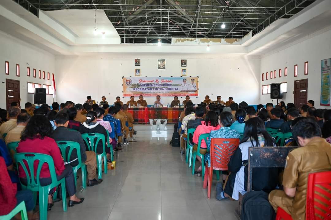 Bupati Humbahas Dosmar Banjarnahor SE bersama Asisten Administrasi Umum Tua Marsatti Marbun SE dan para pimpinan OPD (Organisasi Perangkat Daerah) hadiri Musrenbang (Musyawarah Perencanaan Pembangunan) Kecamatan Lintongnihuta bertemoat di Aula Kantor Camat Lintongnihuta, 30/1/2024.