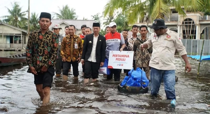 Menyikapi bencana banjir yang melanda di Kepenghuluan Rantau Bais, Rokan Hilir (Rohil), Pertamina Hulu Energi (PHE) Siak mengambil langkah cepat memberikan bantuan bahan pokok di sekitar wilayah operasional.