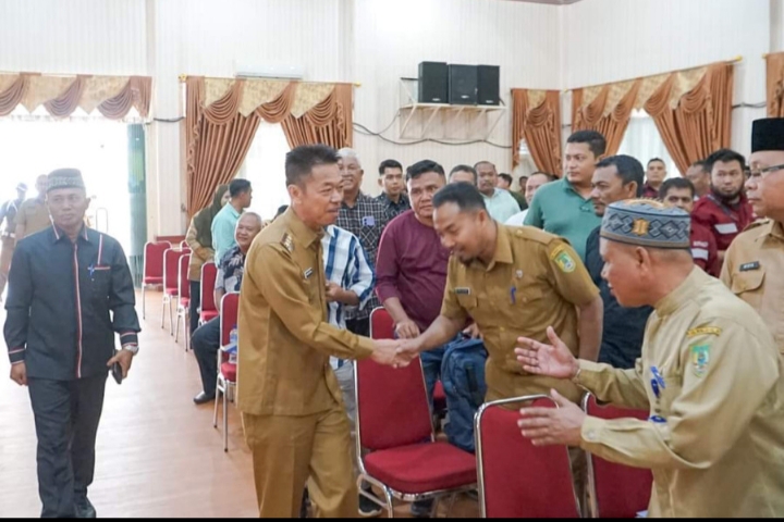 Bupati Rokan Hilir (Rohil) Afrizal Sintong SIP, M.Si secara langsung memimpin rapat Forkopimda tentang antisipasi dan partisipasi Perusahaan/Pengusaha dalam penanggulangan banjir di Kabupaten Rohil, Senin (8/1/2023).