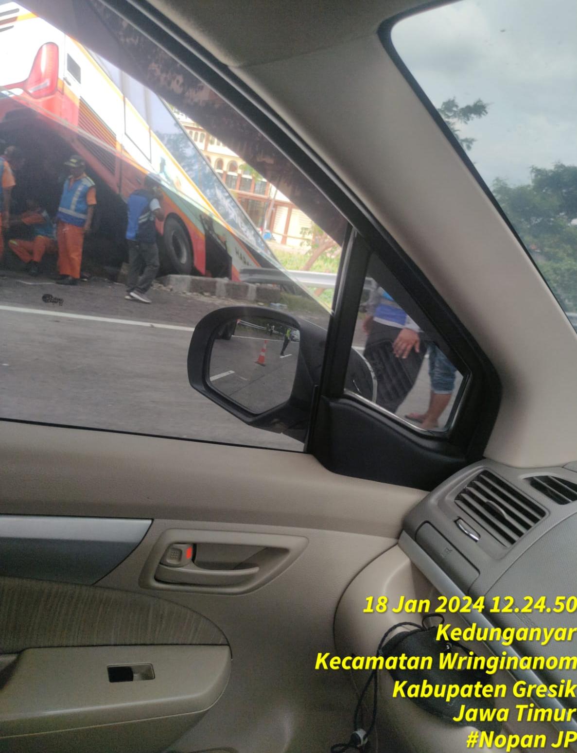 Bus Harapan Jaya Kecelakaan di Tol Ruas Mojokerto – Surabaya 3 Orang Mengalami Luka