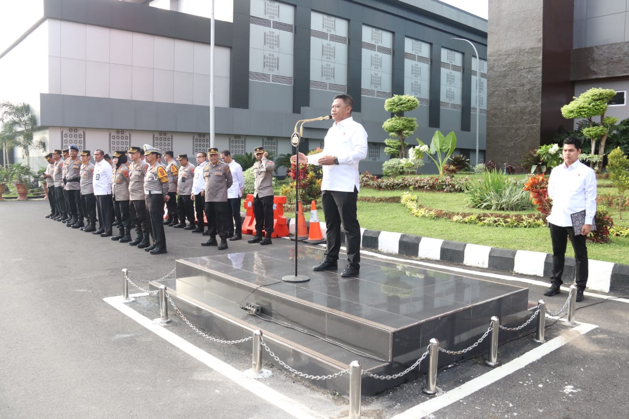 Dirreskrimsus Polda Sumsel Kombes Pol Bagus Suropratomo Oktobrianto pimpin Apel pagi dilapangan Mapolda Sumsel Jalan Jenderal Sudirman KM 4 Palembang Senin 29Januari 2024