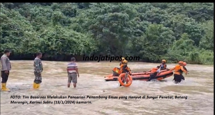 Edi Suparman Lubis (35) warga Koto Dua Pesisir Bukit, Kota Sungai Penuh Provinsi Jambi yang hanyut mendulang emas di kawasan TNKS Sungai Penetai Kecamatan Batang Merangin Kabupaten Kerinci ditemukan oleh warga dan pihak keluarga korban.